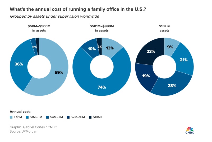 The biggest cost is staffing, which has become more expensive as family offices have tripled in number over the past five years. Family offices are increasingly competing with one another for senior talent, according to recruiters.